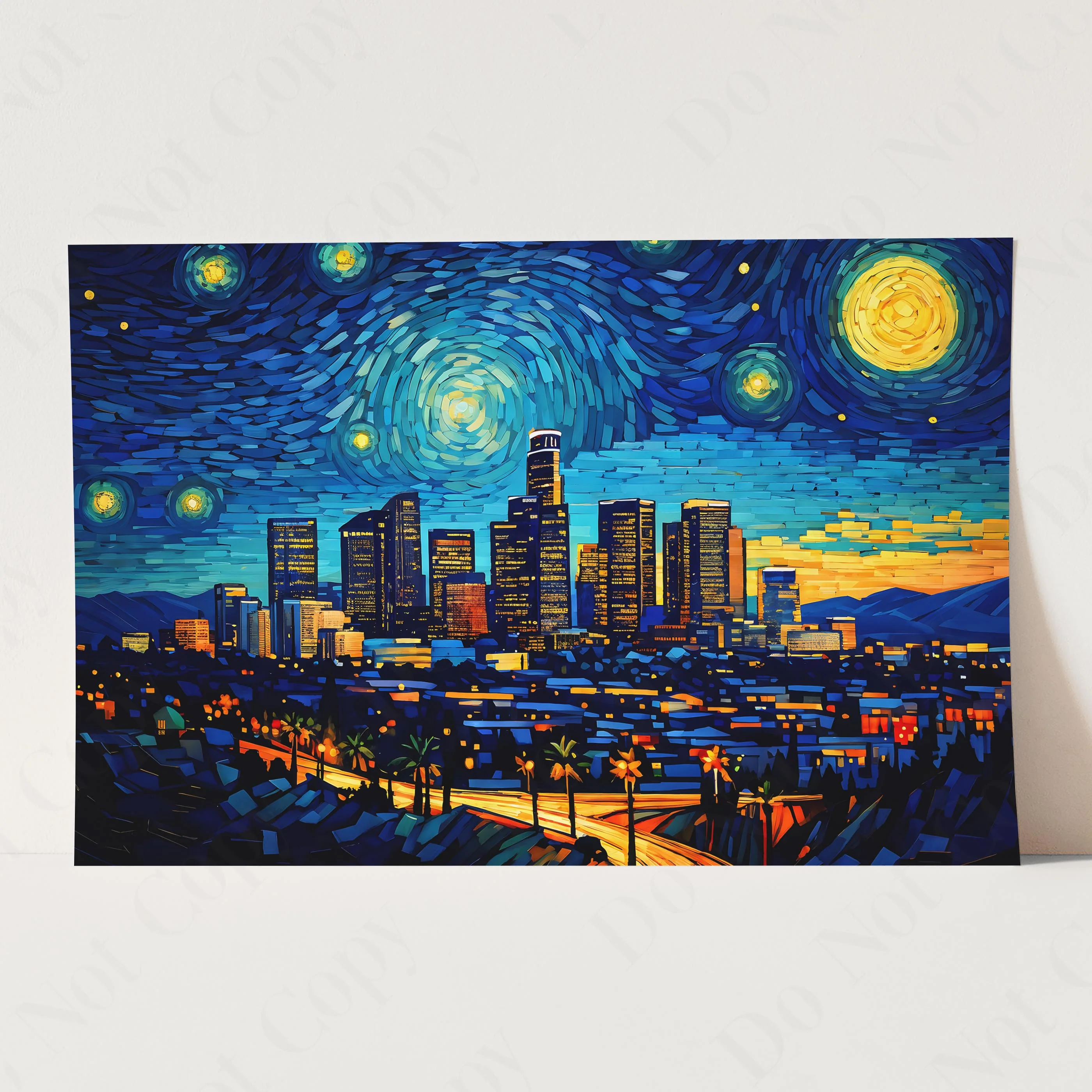 Los Angeles City Skyline as Van Gogh Starry Night
